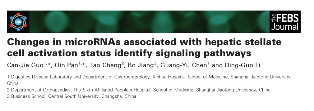 Guo C, et al. Changes in microRNAs associated with hepatic stellate cell activation status identify signaling pathways. FEBS J. 2009 Sep;276(18):5163-76. (IF=3.986)