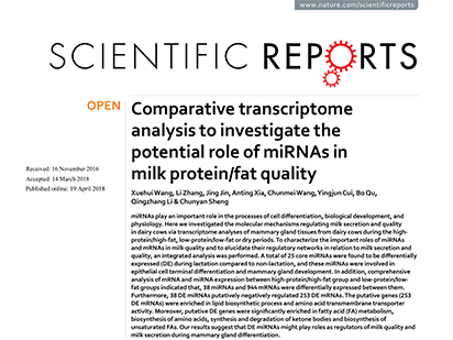 miRNA在乳蛋白脂肪质量中的潜在作用-东北农业大学