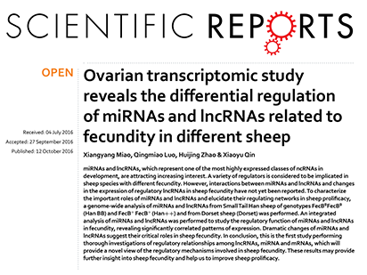卵巢转录组学研究揭示不同品系绵羊的繁殖力相关miRNA和lncRNA的差异调控-中国农科院