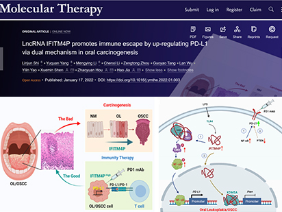 口腔白斑病(oral leukoplakia,OL)是最重要的口腔潜在恶性疾患之一,上皮异常增生是其病理学特征,且因口腔部位相对表浅易于观测,可作为全身癌前病变的代表性疾病,是癌前病变发生发展的良好研究模型。但现阶段的药物治疗、手术、激光、冷冻、光动力等疗法均不能有效降低口腔白斑病的癌变率,并且口腔